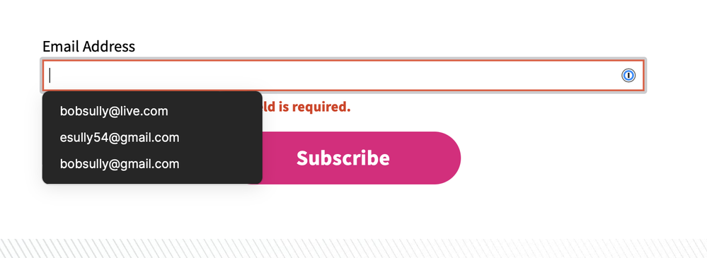 When a move onto a field which requires an email address I am provided a list of addresses from 1P, but this list is incomplete and I need to know how/where I add the new email address so it is a choice.