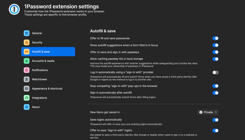 I use 1password everyday and I have no clue what the settings mean on the browser for Auto-fill and save section.