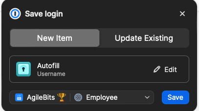 With the Autosave feature, 1Password in the browser now offers to save your pre-existing logins automatically. Before the Autosave feature, the credentials had to be manually saved. If you're entering login credentials that do not match your current Login item or the credentials aren't in your vault yet, it will pop up and ask you to save it. Here's a screenshot for reference: