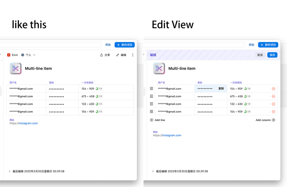 When managing multiple accounts of the same type, we can view them all in a single place, with everything clearly visible at a glance. Compared with the current approach—although I can organize and categorize items using tags—there is still an additional step required to switch between them. Moreover, I must expend extra effort to maintain those tags.In fact, I believe the power of the “multi-line item” extends beyond this.