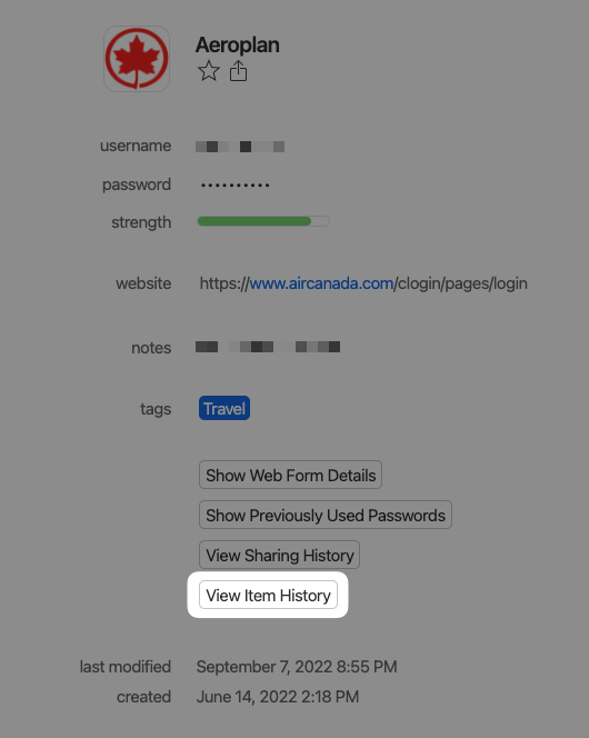 You can view an item's history on 1Password.com: