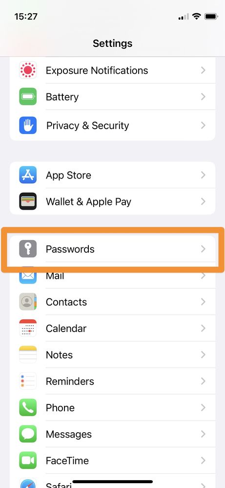 When you open Settings on your iPhone or iPad, you should find Passwords in the sixth section down, below Apple ID management, connectivity, notifications, General etc, and App Store/Apple Pay: