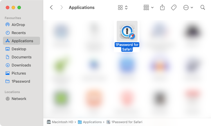 - Open the "1Password for Safari" app. If you're not sure where to find it, open the Finder and click the Go menu > Applications.