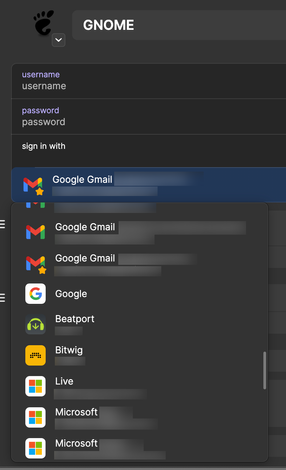 Frequently when I open this dropdown, I already know which login I want to use. So it would be much faster if the dropdown supported typing to filter results...