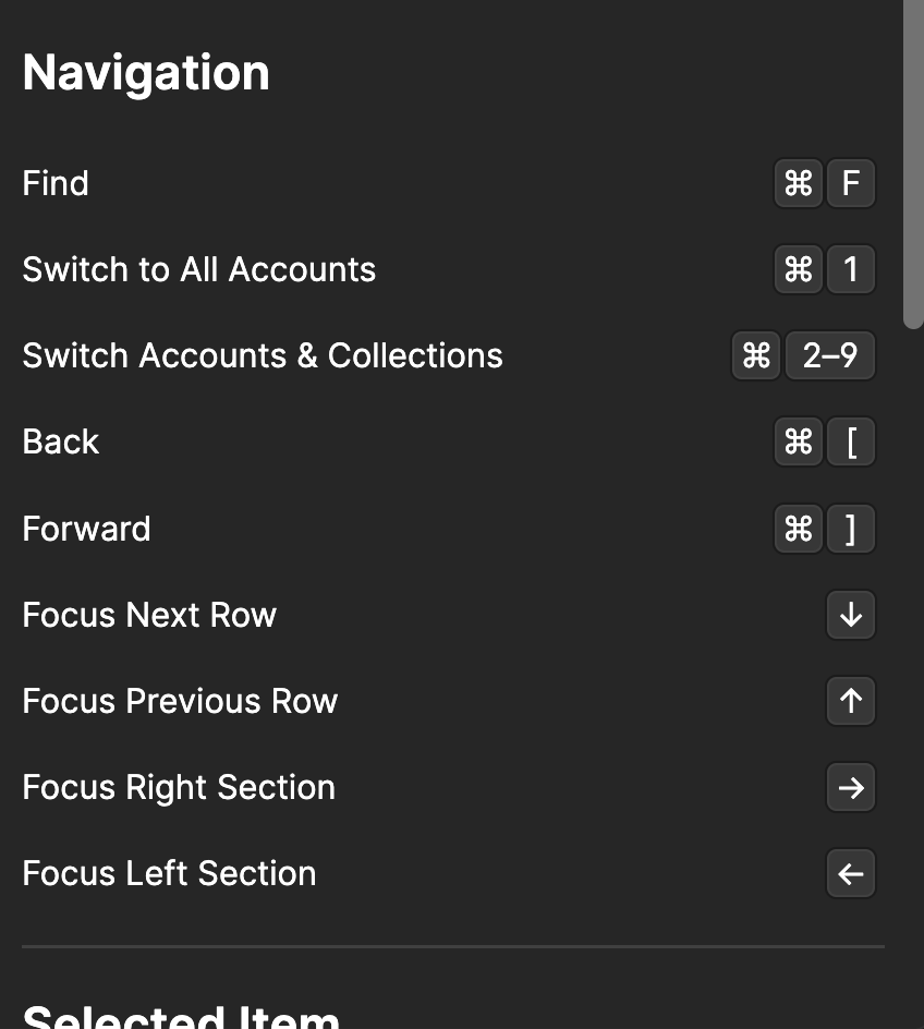 Then, you can use the menu at the top-left of 1Password 8 to choose All Accounts, an individual vault, or a collection. Hope that helps!
