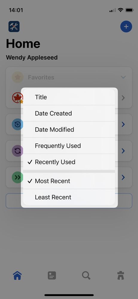 Tapping and holding on the Favorites header on the Home tab will show this: