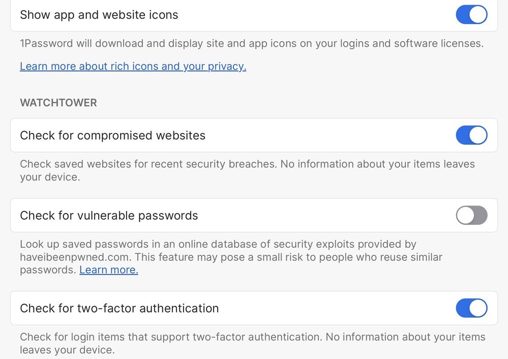 I’m having a problem with crashes on my iPad Air any time I try to go to Watchtower detail pages. Subsequently reopening 1Password immediately crashes after Touch ID. Rebooting does not help. Reinstall regains access to account, but problem recurs if Watchtower subpage is accessed. Here are some installation specifics for reference. Any thoughts? Thanks.