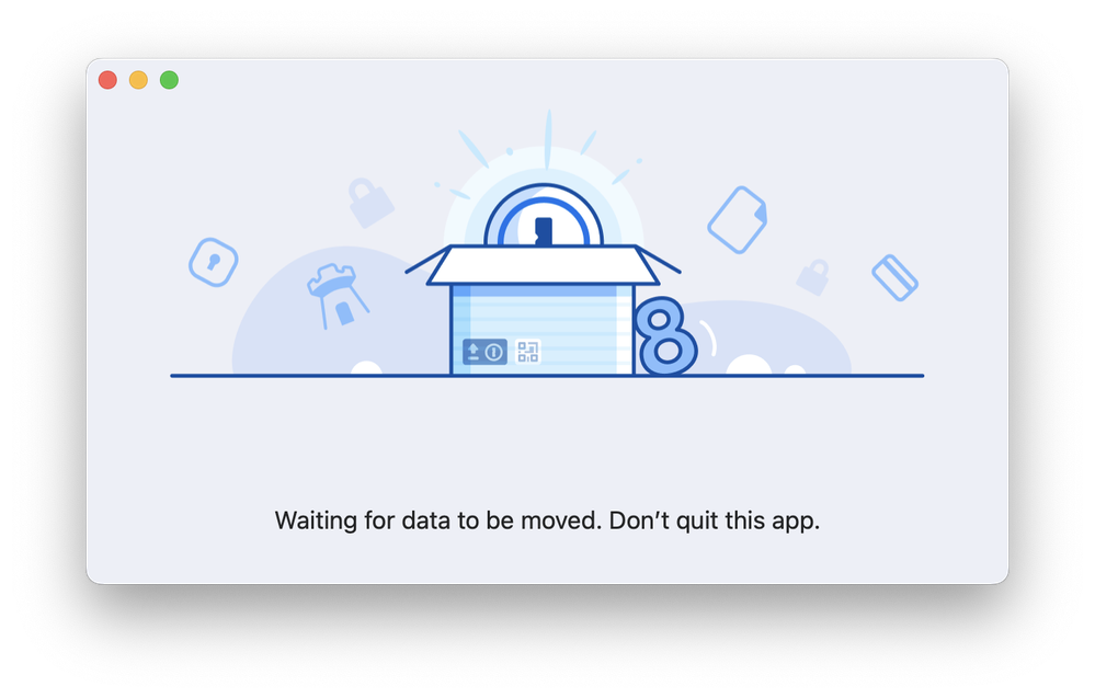 I am upgrading from 1Password 7 to 8. I signed up online, installed the Safari browser extension, and downloaded and ran the 1Password 8 installer for Mac. It launched 1Password 7, and displayed a screen that reads "Waiting for data to be moved. Don't quit this app." Nothing has happened for a very long time. Is there a way to know if there's a problem, or if anything is happening?