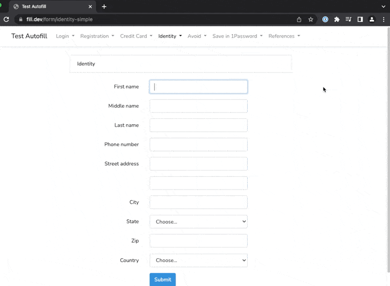 - Click 'Autofill' on the item you'd like to fill into the form.