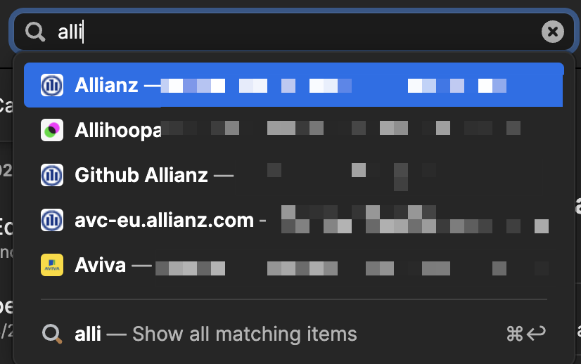pops out, I can't find pretty anything. But when I search something in the 1password field it finds things.