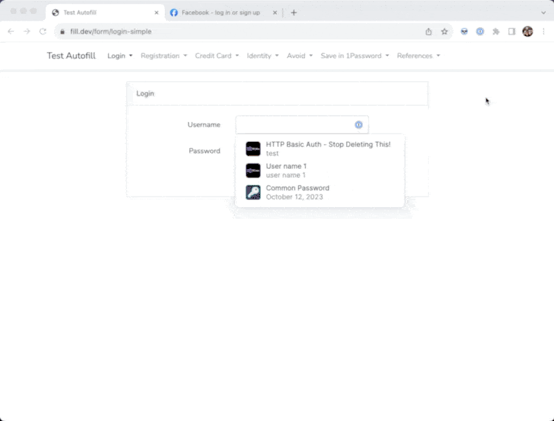 Then, on the websites, we can use the corresponding login item and the password item to autofill the login info. However, we will need to click twice and here is the demo GIF: