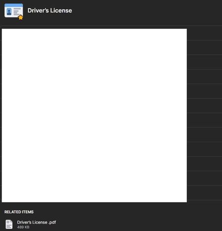 For example, here is my driver's license, under Driver Licenses category: