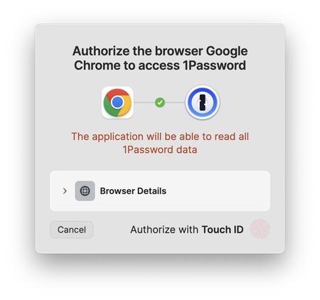 Is this safe? Chrome wants full access to my 1Password data