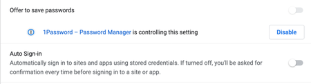 Chrome's built-in Auto Sign-in is disabled and managed by 1Password. And yet when I try to login to a site and there's...
