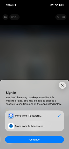 This brings me to issue number two. - When attempting to sign in with a passkey, once again, macOS defaults to the following prompt: