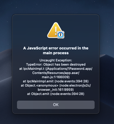 I've no any idea about how to reproduce the issue, but it happened twice in around 3 minutes. I had the 1Pass main app running in background and tried to open it with quick access and with m...