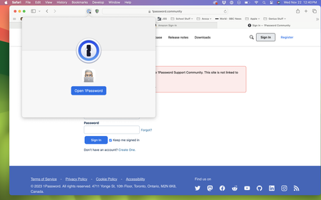 Why is it that when I attempt to use 1PW in Safari it does not work? With 1PW already open, I open Safari, go to a site where I have an account. When I click the icon in the toolbar all I get is "Ope...