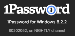 I'm using 1Password for Windows 8.2.2-43.NIGHTLY.