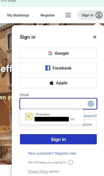 When I want to login on https://www.thetrainline.com/ 1P correctly suggest my login. However, when I click on it, the popup window for the login closes and I'm not logged in.