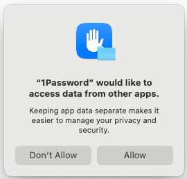 MacOS: “1Password” would like to access data from other apps?