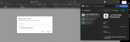 Hi, I have an issue when safari extension doesn't fill credentials for my router with freshtomato firmware. It doesn't even work if I click on autofill manually.