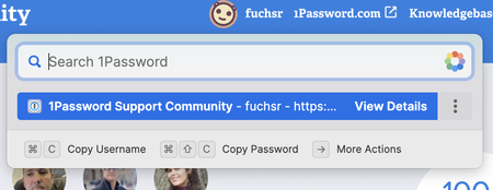 Copy Username and Copy Password and More Actions all look like clickable items, but they're jus...