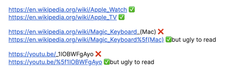 Thank you for following up. While the code formatting issue that you reported in the old thread has since been fixed, the issue where certain markdown characters can break up URLs is still open in our developer's backlog. I don't have an update to share at the moment.