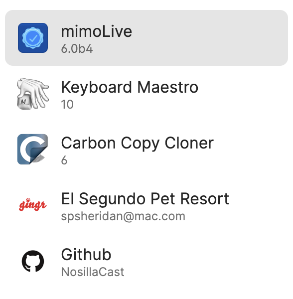 There could be a root cause I've thought of. In both of these examples, both apps were downloaded through different means than when the entry was made in 1P. Affinity Publisher for example was originally purchased directly from the developer but is now a Mac App Store download. The main version number hasn't changed. And mimoLive has been downloaded as a beta right now, not the released version in 1Password.