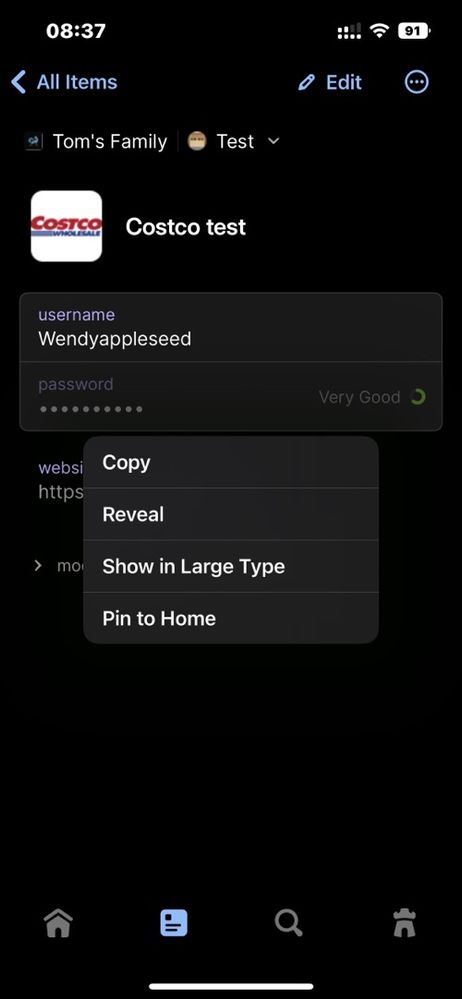 In the previous version of 1Password I could choose to see my password (and choose to see it on screen in large font) if I tapped on the password field. That feature is missing from the new version, which is a backwards step. Now I need to “edit” the record to see the password if I’m manually typing it into a site.
