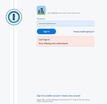 When logging into 1Password's website, I routinely get the error message: