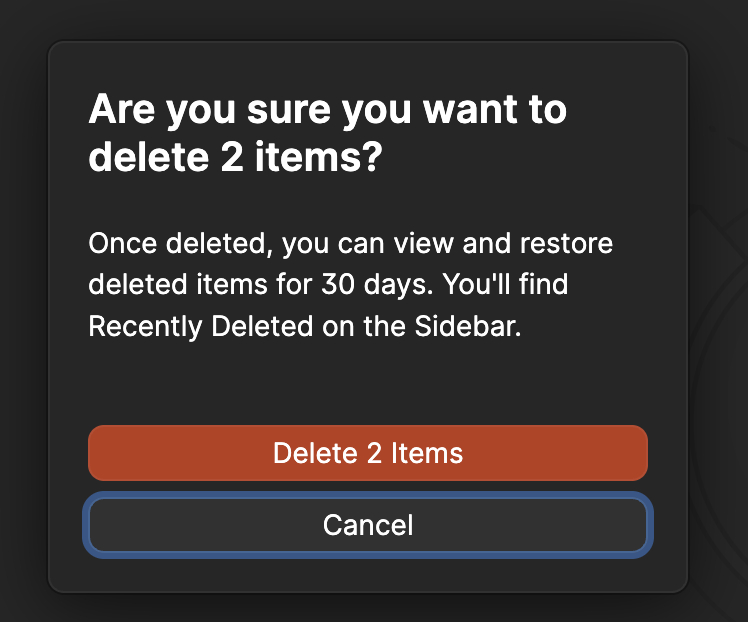 Hello, I need to delete multiple items. When I select them using Cmd-A etc, the three ellipsis dots on the right that are used to delete individual items disappears so I can't just select Delete with all Items selected. And when I do a right click with the items still selected I just get my Win-11/Chrome right-click menu, not the 1Passport menu, so afagin there seems to be no simple way to delete these selected multiple items. Please help, thanks1