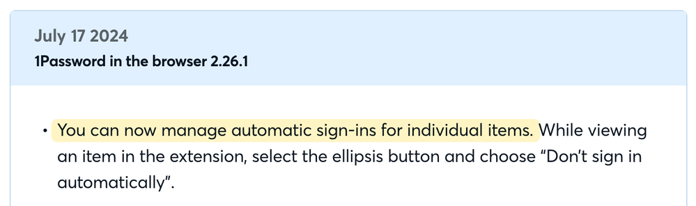 Thank you for sharing! You can indeed manage automatic sign-ins for individual items: