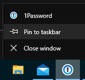 Clicking on the windows icon - no choice for 1password appears (icon or otherwise).