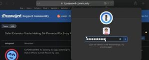 For the second time today when attempting to bring up the Safari extension while on a web site I was presented with a request for my password. However even after entering the password I get the “coul...