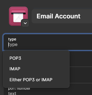 New Item -> Email Account, now missing IMAP section label?