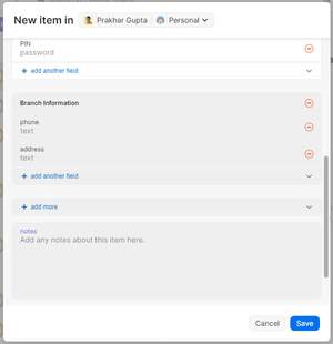Former Member5 years agoNew Item [Bank Account] field issue While creating a new item for "bank account" the branch information "address" field has TEXT type rather than it should be of ADDRESS type. 1Password Version: 80202039 Extens...Show More