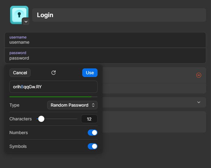 When you click on the Password field, a window opens that allows you to easily create a password.