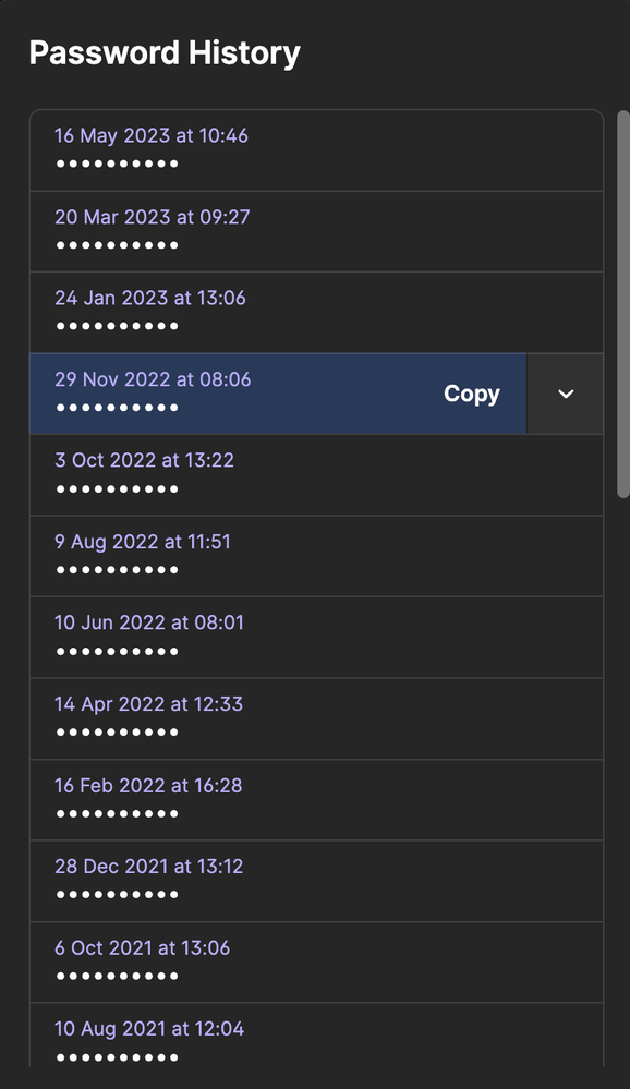 I'd also like to ask you to try creating a test login item and then updating the password. Does the in-app password history work as expected? We'll determine our next steps based on whether this behaviour is exclusive to a particular item. Let me know what you find or if you have any questions! 🙂