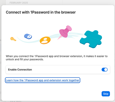 Nonsensical choice: Connect with 1Password in the browser