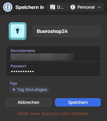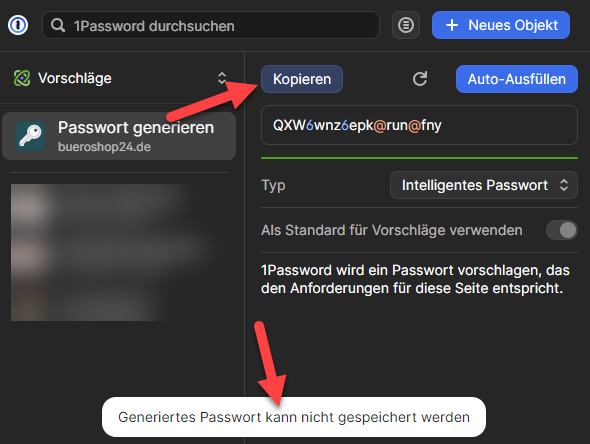 https://www.bueroshop24.de/registrierungbut it was not possible to save a new entry for that shop into 1Password. ☹️It was also not possible to use the generated password from the browser infield-popup. Nothing happens when clicking on the generated password.