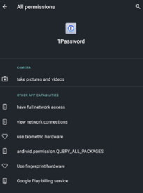 1. Tap Apps > Manage apps > 1Password 8 > Other permissions.