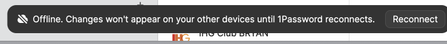 I get the message above about every time I open 1Password. I will click reconnect and sometimes. it does reconnect and sometimes it doesn't. Eventually it will reconnect, but it is an annoyance.