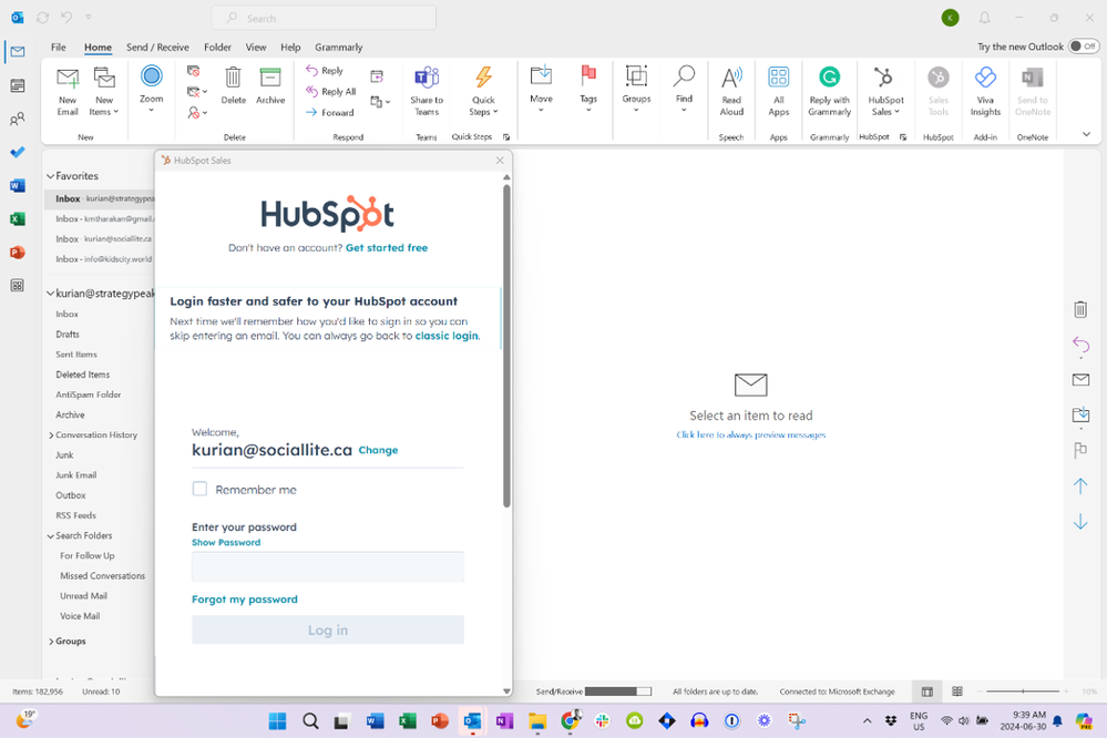 When I open up my desktop Outlook, I get a pop-up window asking me to log into my Hub Spot CRM. However, 1Pass does not allow me the option to autofill this pop-up.