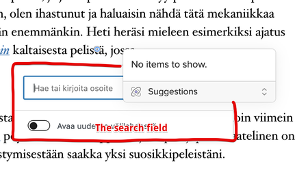 When I'm writing a post in the WordPress WYSIWYG editor and adding a link, there's a popup search field to find posts on my WordPress site to link to. 1Password shows up on this search field to offer...