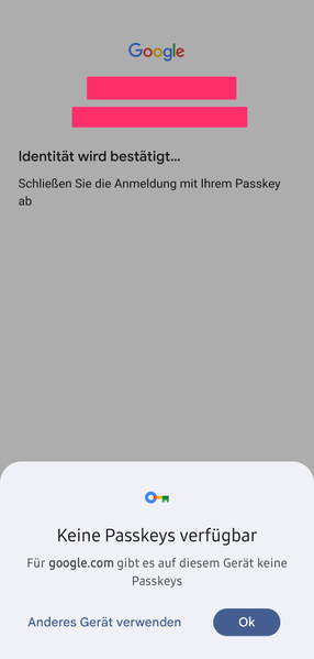 PASSKEY - not working for GMAIL on Smartphone but on Desktop