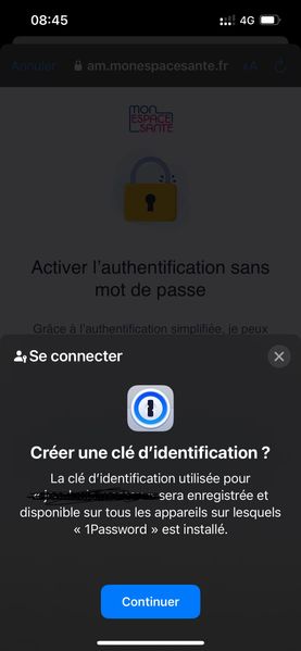 Passkey monespacesante.fr