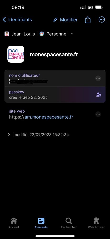 There’s no passkey connection avalaible when connecting to monespacesante.fr in Safari.