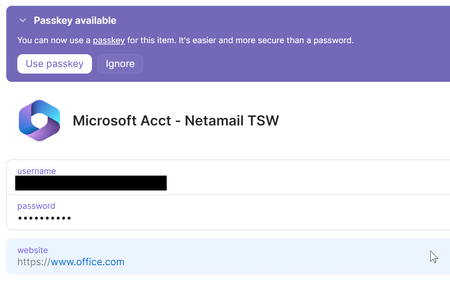 In 1 Password desktop of browser extension or IOS app i get offered use of Passkey - when i select it - i get a page saying not supported