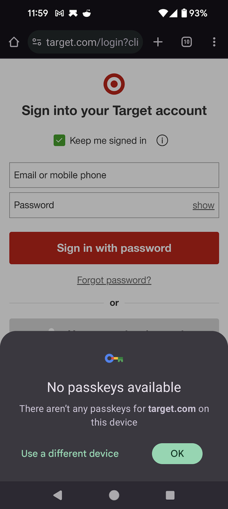 It's also worth mentioning that using passkeys for the Target.com website on my iPhone in the Safari browser works perfectly.