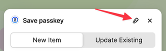 I don't recommend that you save a passkey in lieu of a hardware security key for MFA since that can cause issues. Because security keys and passkeys use similar webauthn technology, 1Password may offer to save a passkey when you're prompted to insert a hardware security key. In those cases, you can dismiss the 1Password prompt to use your hardware security key instead: